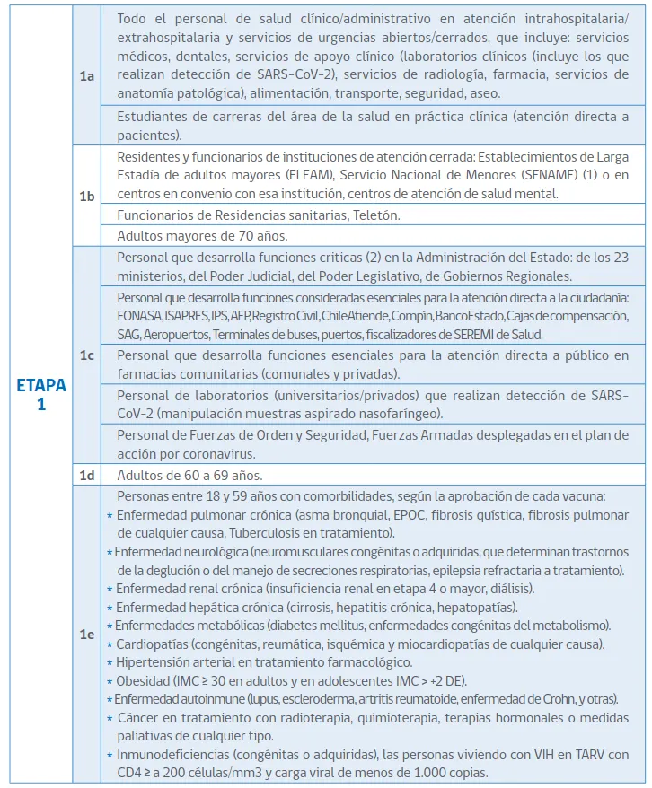 Si bien el Gobierno no ha puesto a disposición un documento mas exhaustivo acerca de su Plan de Vacunación Covid-19, si conocemos los grupos que se irán vacunando a medida que lleguen las vacunas.