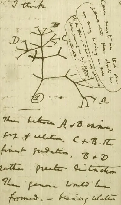 Darwin habló de «unidad de herencia», pues aún no aparecía ante sus ojos un señor de apellido Mendel, a pesar de que hay registros de que ambos conocían, al menos de nombre, la obra del otro. Más notable aún: la imagen que se formula en la cabeza de Darwin sobre cómo se relacionan las especies es sorprendemente precisa.