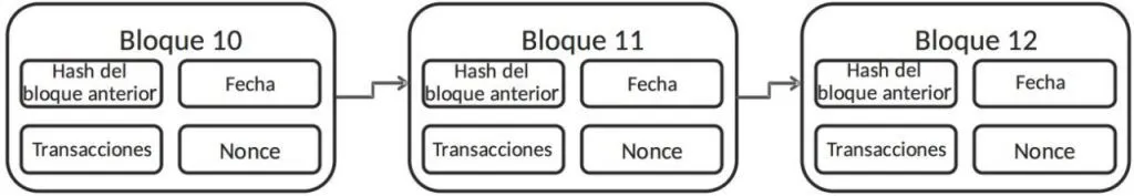 Así se ve el esquema de la cadena de bloques al microscopio. Cada bloque referencia al anterior mediante un hash de todos los datos que contiene.