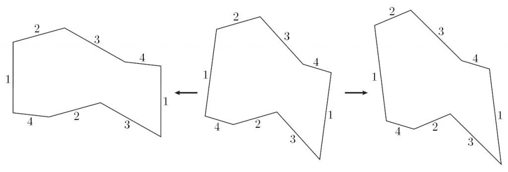 El emparejamiento de lados en realidad indica una forma de identificar los lados (en el sentido de considerarlos el mismo). Para entender mejor esta idea, recuerde cómo en Pacman el personaje aparece por el lado opuesto al salir del escenario. Nosotros proponemos una versión un poco más complicada: