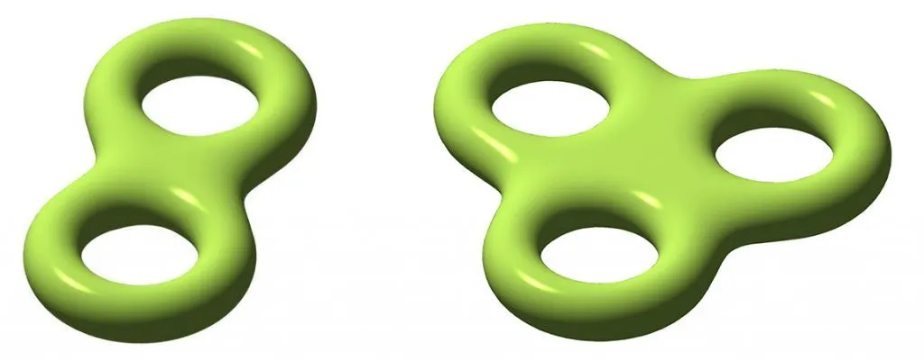 Superficies con dos y tres agujeros. Fuente: Wikipedia.
