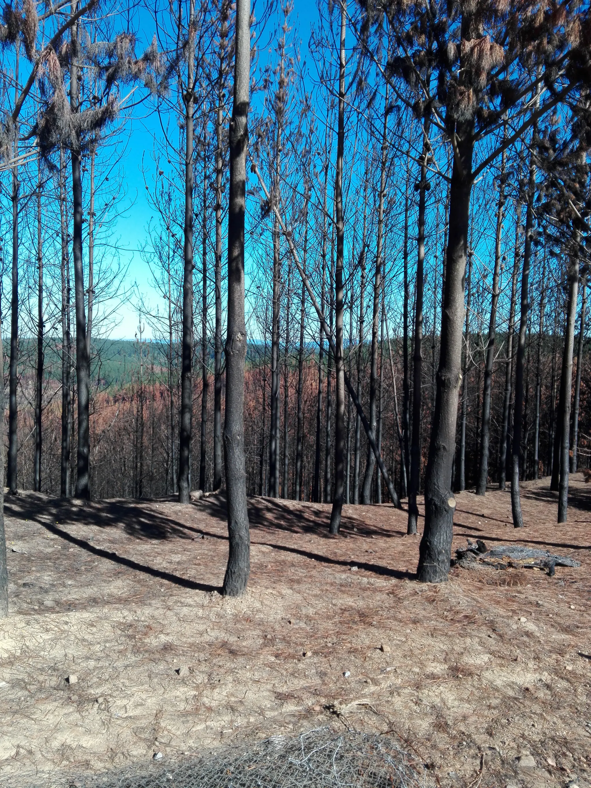 Especies como el pino radiata y el eucaliptos son pirófitas, es decir, se han adaptado a los incendios forestales. No es que entren en autocombustión y produzcan incendios, pero sus características (la resina, la corteza, sus hojas...) favorecen la expansión e intensidad de los incendios forestales, haciéndolos mucho más devastadores. Foto: Iván Quezada.