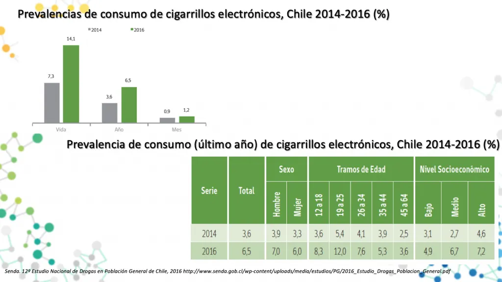 Consumo de cigarrillo electrónico. Encuesta SENDA. Chile. 2014-2016