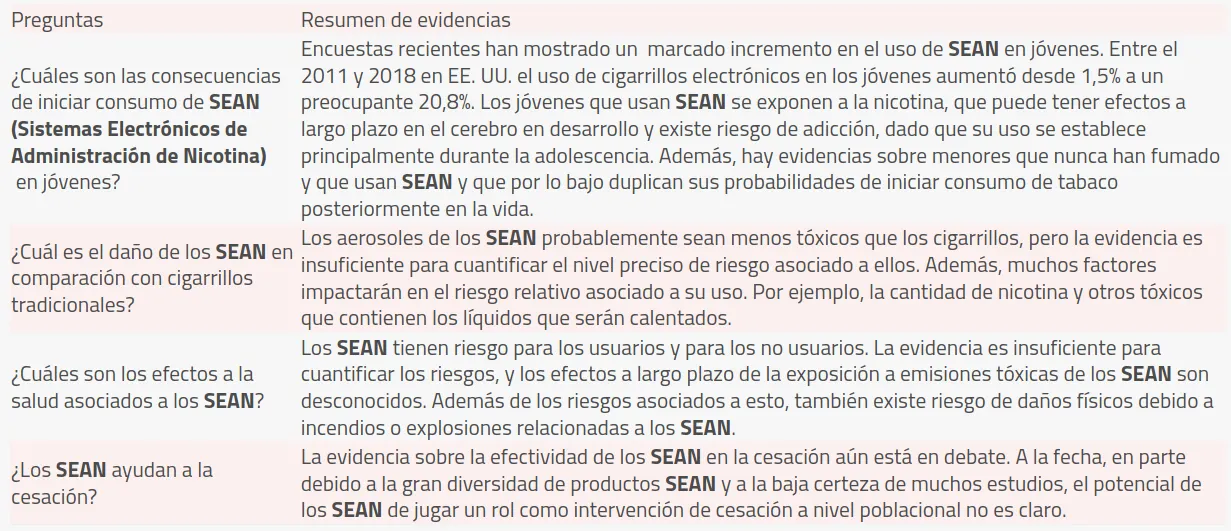 Como las evidencias indican que los cigarrillos electrónicos causan daño y su efectividad para dejar de fumar es contradictoria, las autoridades no los recomiendan como terapia de cesación.