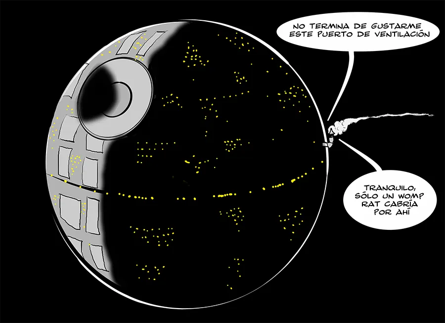 Ahora, también es cierto que, al disparar su rayo mortal, la Estrella de la Muerte saldría disparada en dirección contraria a la del rayo y seguramente sería desintegrada por la impulsión. Así que esa estación espacial de combate totalmente operacional debe tener un sistema de compensación de retroceso de proporciones épicas, o la Alianza Rebelde no habría tenido que mover ni un Ala-X para destruirla.