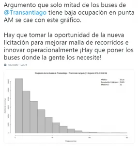 La información que nos entrega la desviación estándar es útil porque ayuda a pensar qué tan distintos son los casos que componen el promedio. Podemos poner en práctica lo aprendido con un ejemplo. Acá un académico intenta argumentar, con un gráfico, que existe una falla en el diseño de Transantiago pues la mayoría de los buses del Transantiago tienen muy baja ocupación en la hora punta de la mañana.