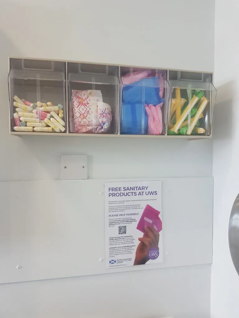Así lo hacen en las universidades de Escocia: con esto impiden que las mujeres se ausenten por no tener la capacidad económica para comprar productos de higiene menstrual. Acá el uso es consciente: lo usa quien lo necesita. Foto: @criordor