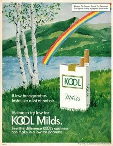 Los cigarrillos mentolados Kool (no se venden en Chile) son populares entre los 16 a 25 años, por lo que la industria reforzó las estrategias publicitarias a ese grupo (4,6). Not kool, man. Fuente: SRITA (2)