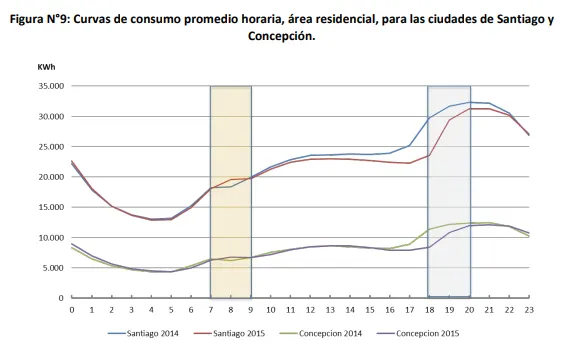 A primera vista, la extensión del horario de verano implica un aumento en el consumo de los clientes residenciales durante el peak matutino (06:00 a 10:00 hrs.), pero que es compensado por la disminución en el consumo durante el peak vespertino (17:00 a 20:00 hrs.).