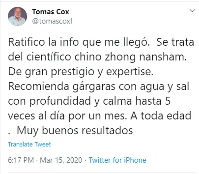 Bueno, pero hacer gárgaras con sal seguro que elimina al virus