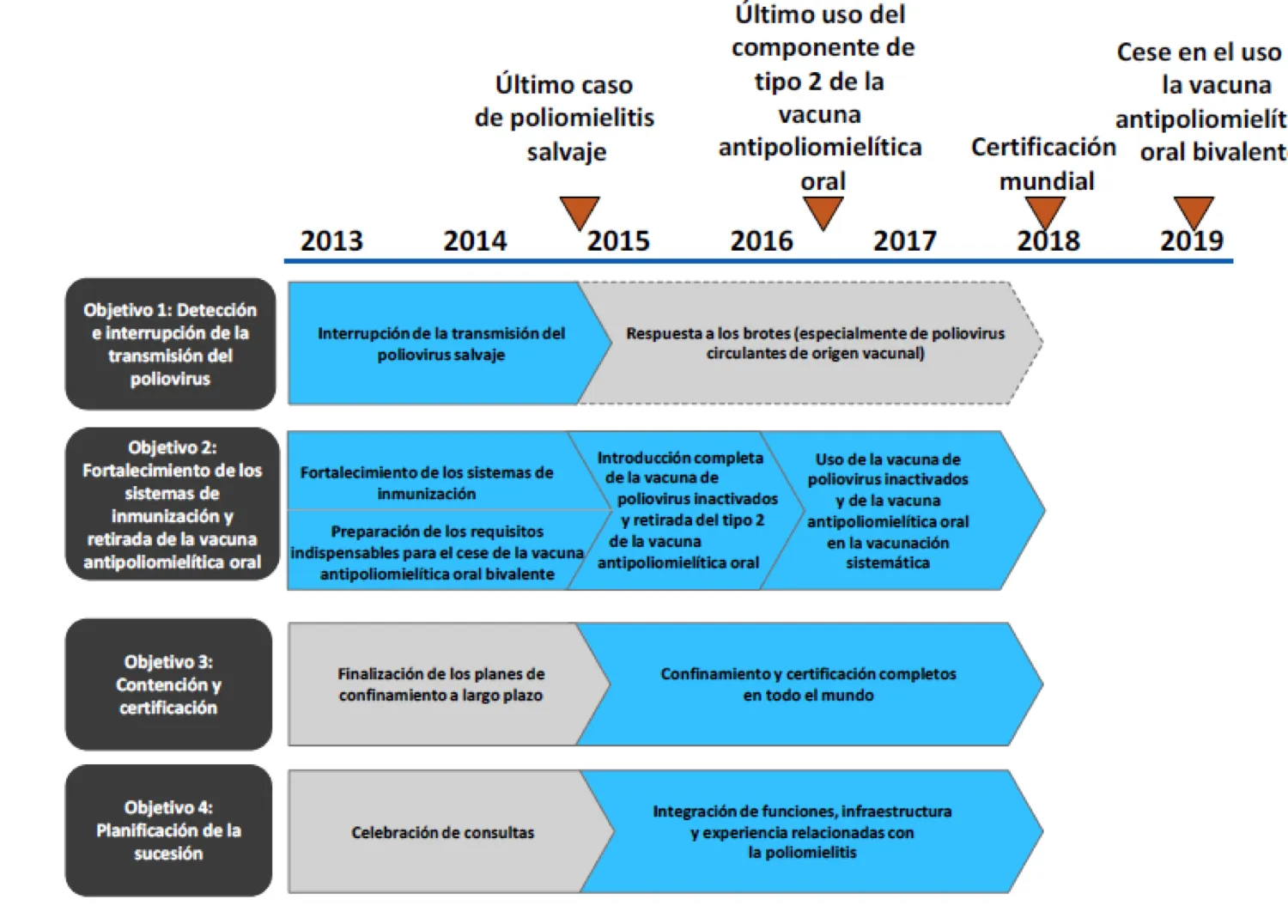 En 1988, la OMS inició una estrategia global para erradicar la enfermedad, utilizando como principal herramienta la vacunación sistemática. Esta iniciativa permitió importantes logros, disminuyendo el número de casos de 350 mil notificados en 1980 a sólo 223 en el año 2012. Es precisamente en ese año, durante la 65° Asamblea Mundial de la Salud, cuando se declaró el inicio de la etapa final de la erradicación a nivel mundial.